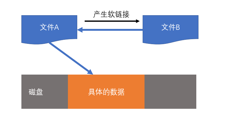 符号链接又称为软连接,如果为某个文件或文件夹A创建符号连接B,则B指向A。
